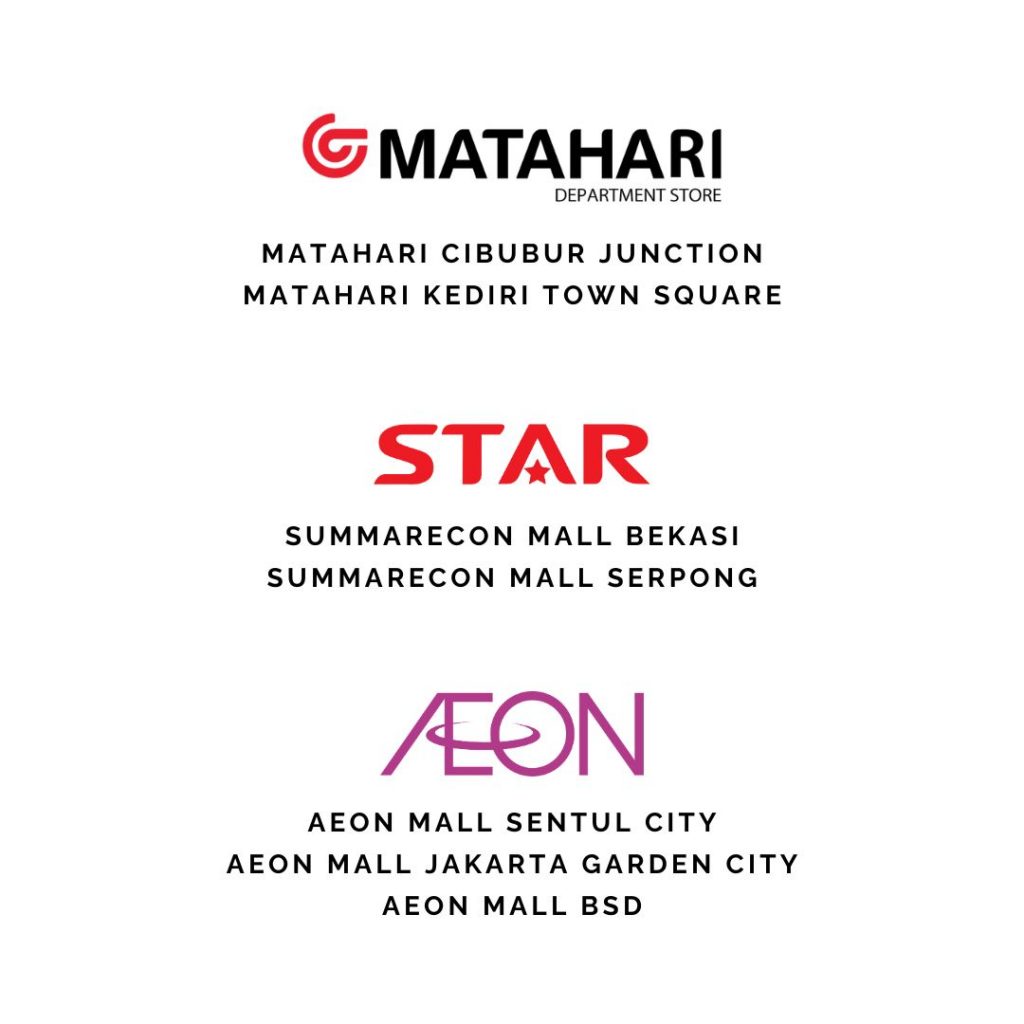 Selain melalui online, kami juga bisa ditemukan di departemenT store terpercaya di indonesia